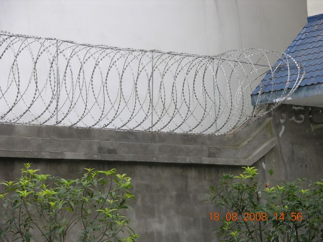 勞教所隔離護(hù)欄-看守所隔離護(hù)欄是用在勞教所、看守所的護(hù)欄,也可以用在監(jiān)獄、機(jī)場(chǎng)等場(chǎng)所。起安全隔離防護(hù)的作用,其結(jié)構(gòu)是由一般采用2米高的網(wǎng)片+2.5米高的Y字型立柱+φ500mm或φ600mmr的刀刺網(wǎng),整體下來(lái)可達(dá)2.5米左右。因其高度對(duì)犯罪分子起到無(wú)法攀爬的作用,起到很好的防護(hù)效果。