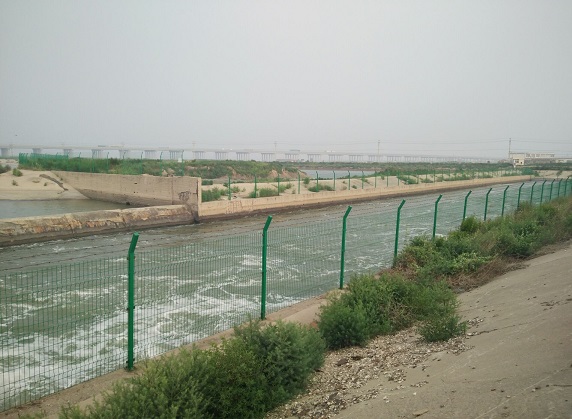 三、 水庫圍欄網(wǎng)的架起①施工程序:固定門柱、角柱和中心柱→固定開端網(wǎng)片→綁扎固定網(wǎng)片→移至下一個網(wǎng)片段施工。