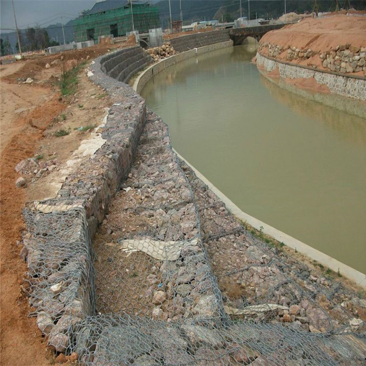生態(tài)石籠護(hù)坡為一種生態(tài)格網(wǎng)結(jié)構(gòu)形式。采用耐腐蝕、高強(qiáng)度、有延展性的低碳鋼絲或包覆PVC以上的鋼絲,用機(jī)械編織制成石籠,用這種網(wǎng)具制成的箱形結(jié)構(gòu),即生態(tài)石籠護(hù)坡。依據(jù)ASTM和EN標(biāo)準(zhǔn),低碳鋼的直徑要根據(jù)工程設(shè)計(jì)的要求而變化。通常在2.0~4.0mm范圍內(nèi),鋼絲的拉伸強(qiáng)度不低于38kg/m2,金屬涂層重量一般在245g/m2以上,其邊線直徑一般要大于網(wǎng)箱的網(wǎng)板直徑。這種結(jié)構(gòu)可用于邊坡支護(hù),基坑支護(hù),山巖掛網(wǎng)噴漿,邊坡植草(綠化),鐵路高速公路隔離護(hù)網(wǎng)等,還可制成箱籠、網(wǎng)墊,用于江河、堤壩、海塘的防沖蝕保護(hù),以及用于水庫(kù)、河流截流的網(wǎng)箱。溝渠河床、溝渠的建設(shè),涉及邊坡和河床的穩(wěn)定,都選擇了生態(tài)格網(wǎng)結(jié)構(gòu),是百年來許多天然河流改造和人工渠道開挖的主要方法。對(duì)河岸、河床都能起到有效的永久保護(hù)作用,還具有控制水流、防止水流失的作用,尤其在環(huán)境保護(hù)、保持水質(zhì)等方面有極好的效果。在護(hù)坡生態(tài)格網(wǎng)結(jié)構(gòu)應(yīng)用與河流護(hù)岸及坡腳保護(hù)方面都是很成功的范例,它充分發(fā)揮了生態(tài)格網(wǎng)的優(yōu)勢(shì),達(dá)到了其它方法無法達(dá)到的理想效果。生態(tài)石籠護(hù)坡工程是將格網(wǎng)拼裝成箱籠,再加塊石等填料制成護(hù)岸新工藝,按結(jié)構(gòu)形式可分為擋墻、護(hù)坡、護(hù)底、護(hù)腳、水下拋石等。由金屬絲組成的格網(wǎng)防護(hù)體,具有一定的抗拉強(qiáng)度,不易被拉斷,填料之間充滿了空隙,具有一定的變形適應(yīng)性。由于基礎(chǔ)條件改變,如發(fā)生不均勻沉降、地震等,箱籠不能將箱內(nèi)填料沖出箱籠外,而能自行調(diào)節(jié),形成新的平衡;又由于箱籠系柔性結(jié)構(gòu),所以防護(hù)工程表面有可能發(fā)生小的變化,但不會(huì)出現(xiàn)開裂、網(wǎng)箱被拉斷等現(xiàn)象,造成護(hù)欄損壞。