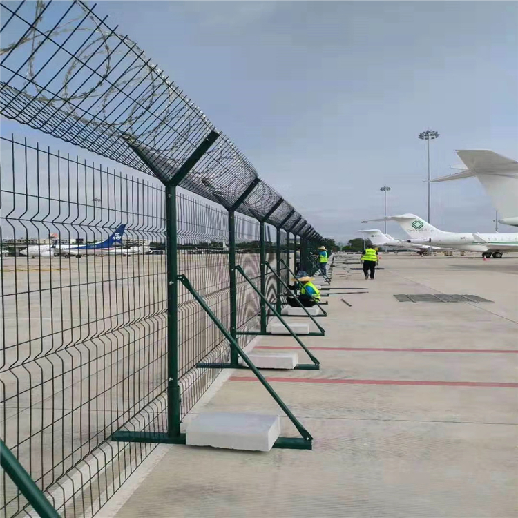 機(jī)場(chǎng)周界鋼絲防護(hù)網(wǎng)其產(chǎn)品造型美觀、花色多樣,既起到圍欄作用,又起到美化作用近年來(lái),被廣泛應(yīng)用在機(jī)場(chǎng),軍事基地護(hù)欄網(wǎng)等高安全場(chǎng)所這種護(hù)欄網(wǎng)的突出特點(diǎn)就是美觀實(shí)用、安全性高、防攀爬能力好,網(wǎng)體連接方式采用特制SBS緊扣件,有效防止人為的破壞性拆卸,橫向四道折彎加強(qiáng)筋,使網(wǎng)面強(qiáng)度顯著增加。我廠可以根據(jù)用戶需要定作各種規(guī)格尺寸的護(hù)欄網(wǎng)產(chǎn)品!