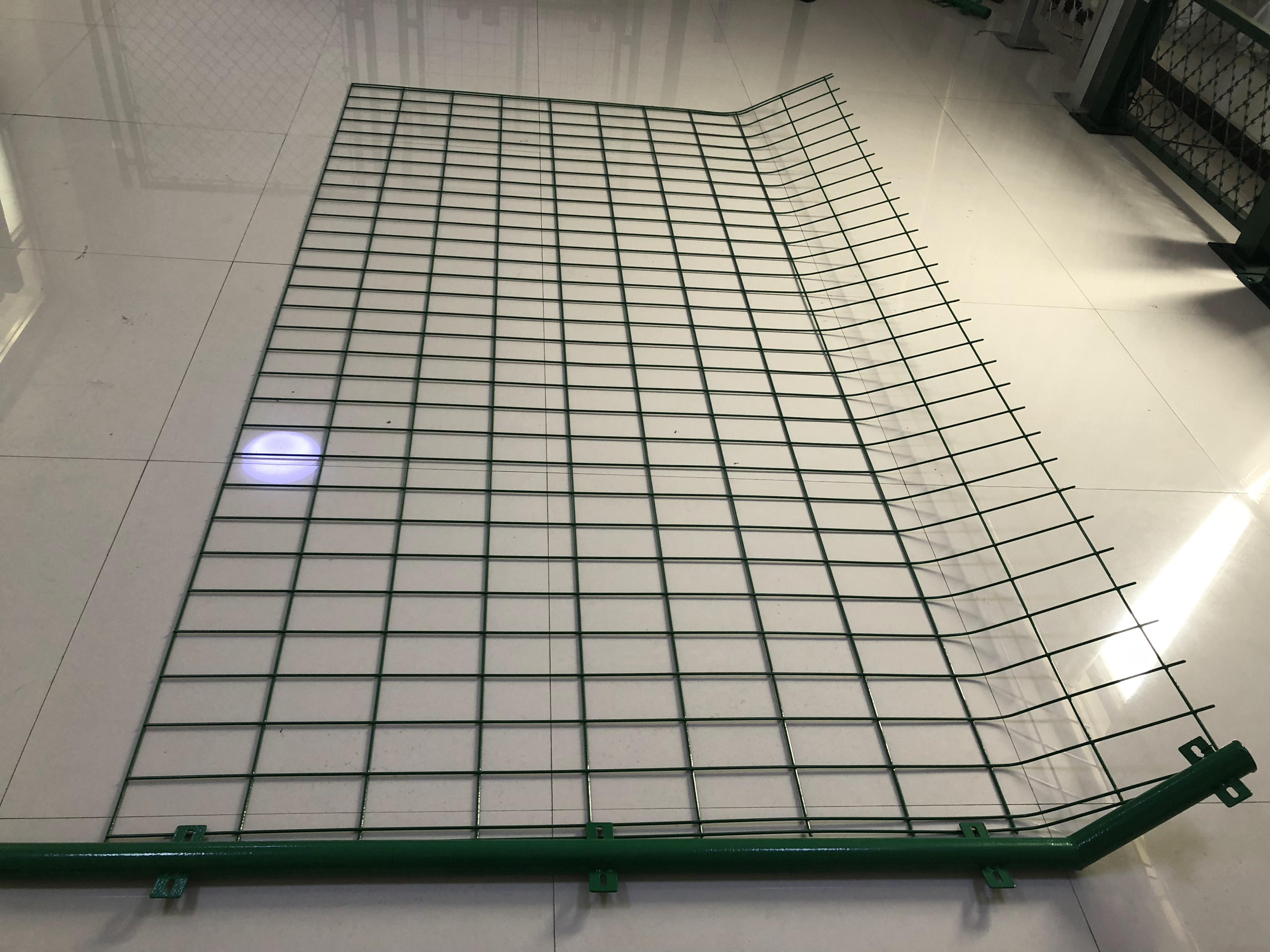 生產工藝:采用盤條拉絲—預直、切斷—全自動數(shù)控排焊機自動焊接成型(編織) —折彎/卷圈—--固定邊框裁剪、焊接—-鋼管支柱裁剪—-連接附件焊接—法蘭底座焊接—質檢—表面處理(鍍鋅、噴塑、浸塑)—二次質檢—檢驗合格,準許出廠—裝車運輸—交付用戶。