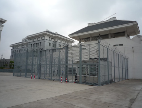 在監(jiān)獄鋼網(wǎng)墻的橫向加裝四道折彎增強筋,在整體本錢增加不多的同時,使網(wǎng)面強度和美感顯著增加,超粗絲徑,超密網(wǎng)格,能夠防剪切、攀爬,腐蝕才能強, 安全使用壽命長。