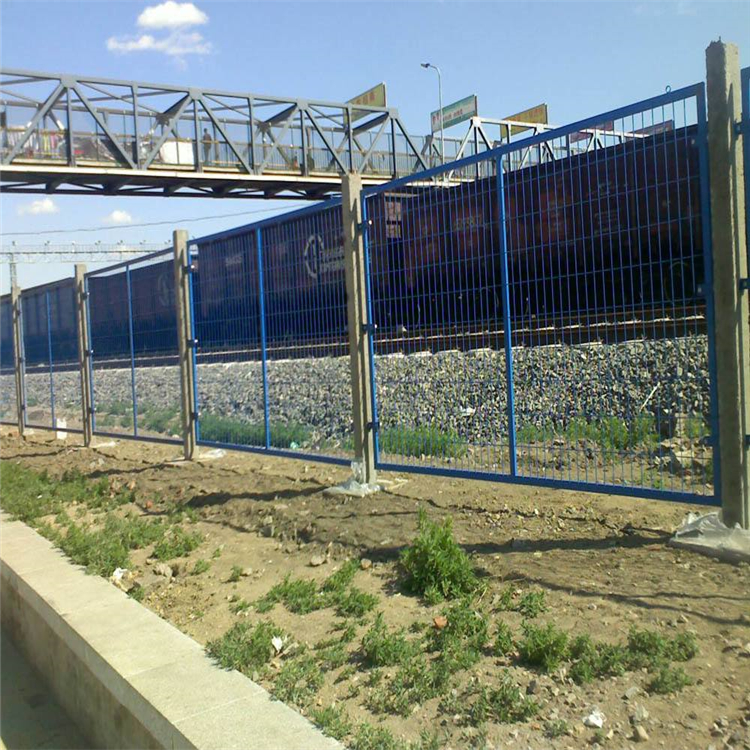 鐵路防護(hù)柵欄主要用于鐵路封閉、高速公路隔離柵、開(kāi)發(fā)區(qū)圍界、場(chǎng)區(qū)圍網(wǎng),采用立柱采用混凝土澆筑件,工程造價(jià)低,強(qiáng)度高·整體穩(wěn)定好,彩色塑層具有良好的防腐蝕和裝飾效果,網(wǎng)圍界整體和諧美觀。