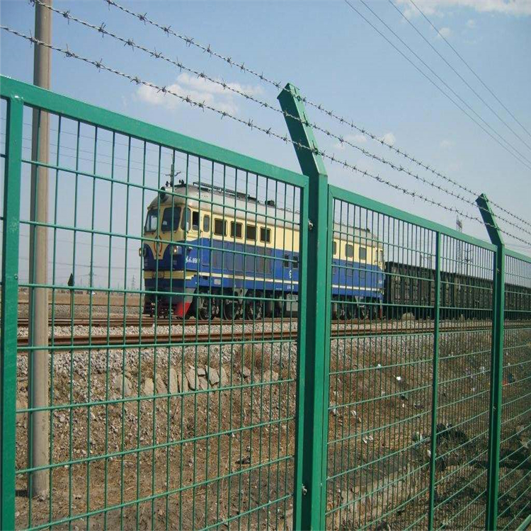 鐵路防護(hù)柵欄主要分鍍鋅防護(hù)柵欄、浸塑防護(hù)柵欄倆大種類,是以立柱加網(wǎng)片連接而成。選用優(yōu)質(zhì)低碳鋼絲焊接。不僅外觀大方,美觀,而且牢固,防腐性好。主要適用于鐵路兩旁及邊界的隔離防護(hù)及美化。
