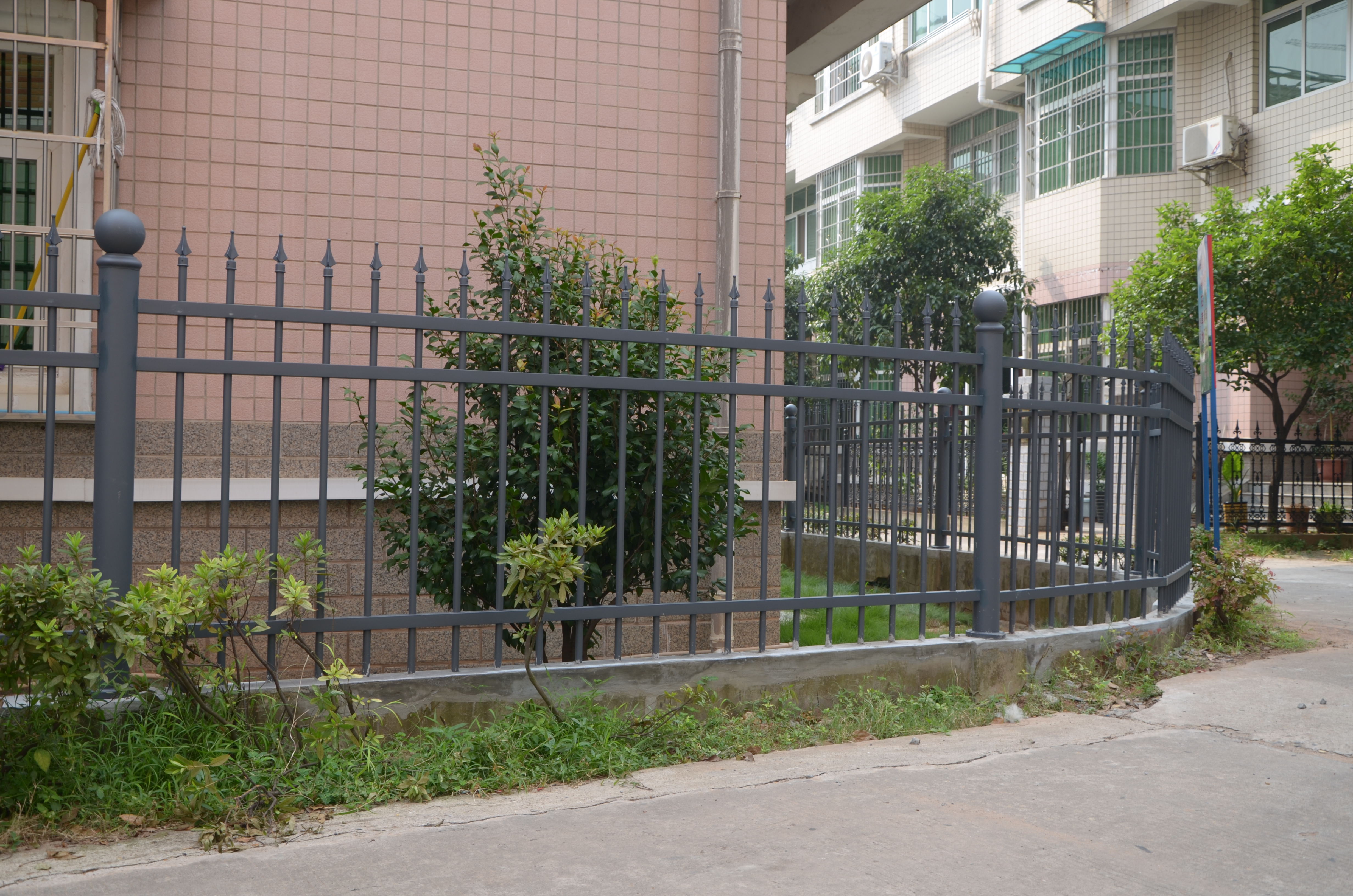 鋅鋼護欄用處廣泛,常用于小區(qū),工廠,學校,公園,用作圍墻護欄。