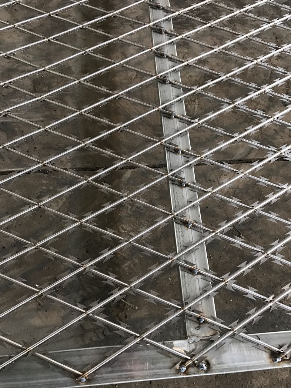 是由刀片刺繩直條焊接而成的,是根據(jù)電焊網(wǎng)片改進(jìn)而成,主要功能是防盜,防攀爬以及隔離。刀片刺繩網(wǎng)芯線上面有鋒利的刀片,手不能握防護(hù)性能好。因為咱們的浸塑的話塑層相對要稍厚一點,這樣會使咱們刀片刺網(wǎng)的刀片變鈍減弱了它的作用,因此不建議使用浸塑的處理方法。