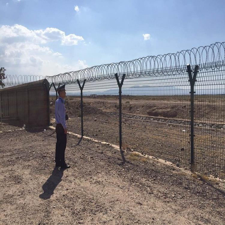 機(jī)場隔離網(wǎng)-機(jī)場防護(hù)網(wǎng)-機(jī)場護(hù)欄網(wǎng)又稱作“Y型安全防御護(hù)網(wǎng)”,是由V型支架立柱,加強(qiáng)型焊接網(wǎng),安全防盜連接件和熱鍍鋅刀片刺籠組成強(qiáng)度和安全防御性級別很高。