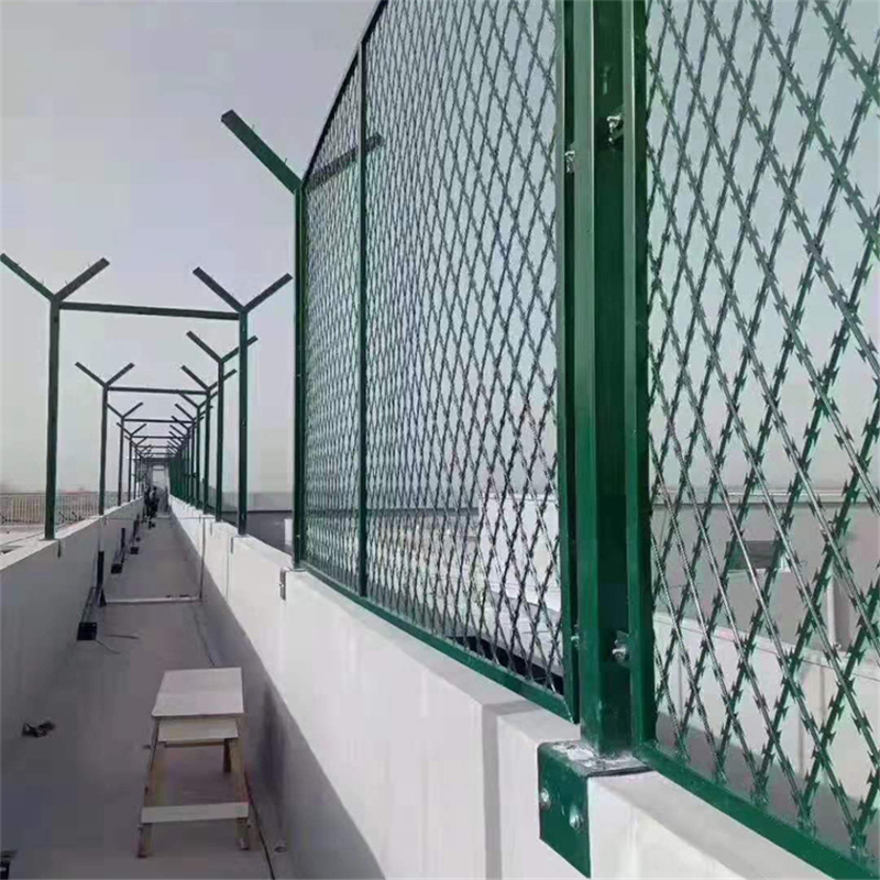 監(jiān)獄金屬刀刺隔離網(wǎng)又稱作“V型安全防御護(hù)網(wǎng)”,是由V型支架立柱加強(qiáng)型焊接片網(wǎng),安全防盜連接件和熱鍍鋅刀片刺籠組成強(qiáng)度和安全防御性級別很高。近年來.被廣泛應(yīng)用在監(jiān)獄,軍事基地等高安全場所。采用電鍍、熱鍍、噴塑、浸塑等防腐形式,具有很好的抗老化、抗曬、耐候等特點(diǎn)。其產(chǎn)品造型美觀、花色多樣,既起到圍欄作用,又起到美化作用。由于具有安全性高、防攀爬能力好,網(wǎng)片連接方式采用特制SBS緊扣件,有效防止人為的破壞性拆卸,橫向四道折彎加強(qiáng)筋,使網(wǎng)面強(qiáng)度顯著增加。