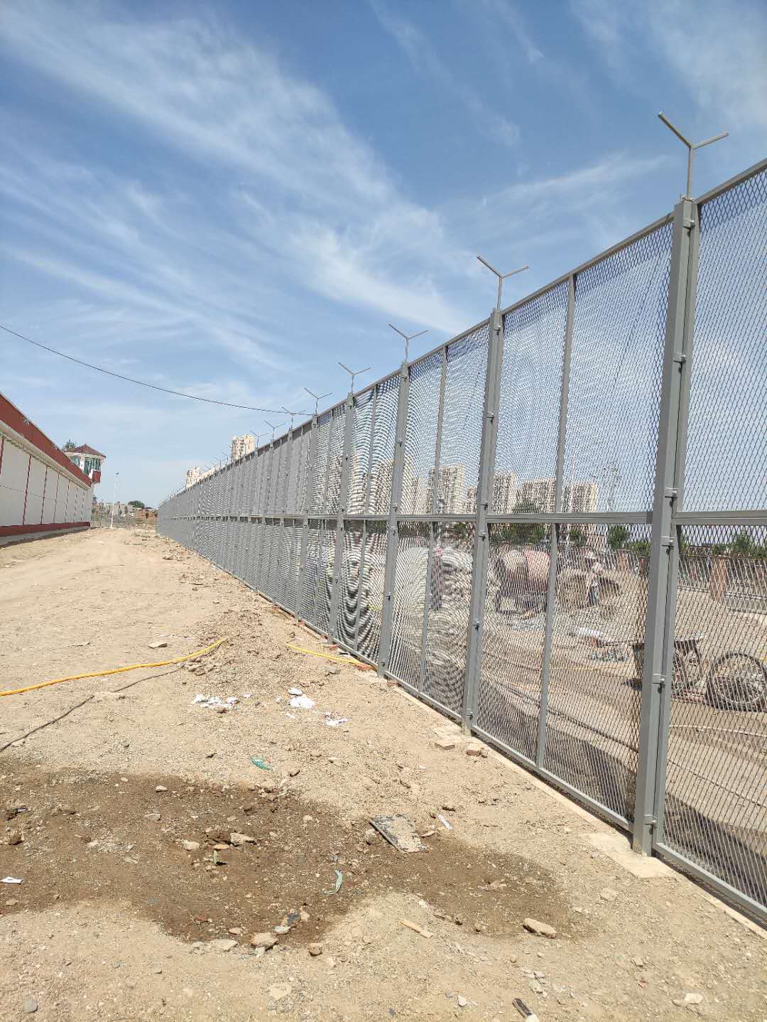 3. 在監(jiān)獄護欄網的橫向加裝四道折彎加強筋,在整體成本增加不多的同時,使網面強度和美感顯著增加。