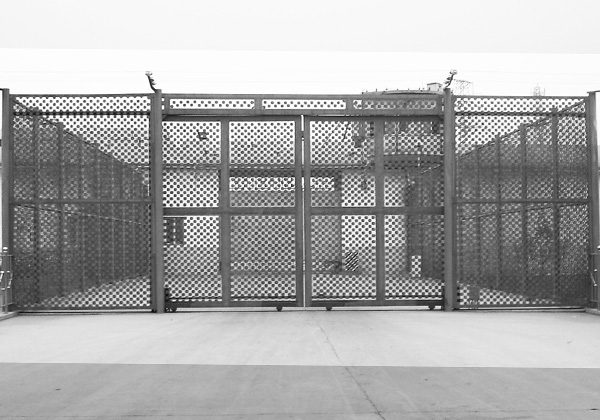 監(jiān)獄隔離網(wǎng)大門組成結(jié)構(gòu):把網(wǎng)片焊接在鐵管框架上,框架是方管或者圓管焊接成的框架結(jié)構(gòu),在框架上焊接用于個(gè)立柱連接的連接板,用防盜螺栓與立柱連接。為了保證網(wǎng)片的防拆卸性能,網(wǎng)片連接方式采用特制防盜緊扣件,有效防止人為的破壞性拆卸。