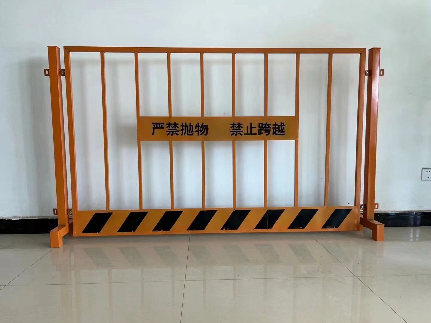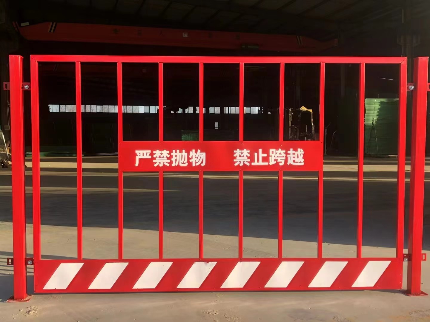 基坑防護(hù)欄是使用網(wǎng)片或豎管與邊框焊接而成,最常用的尺寸為1.2*2m,表面進(jìn)行噴塑或噴漆處理,顏色可選為紅白或黑黃相間的警示色,在基坑護(hù)欄的中部可焊接鐵皮噴涂“嚴(yán)禁拋物、禁止翻越”的警示標(biāo)語,下部可加設(shè)15-20cm的踢腳板,顏色可選擇黑紅或紅白相間的涂料。