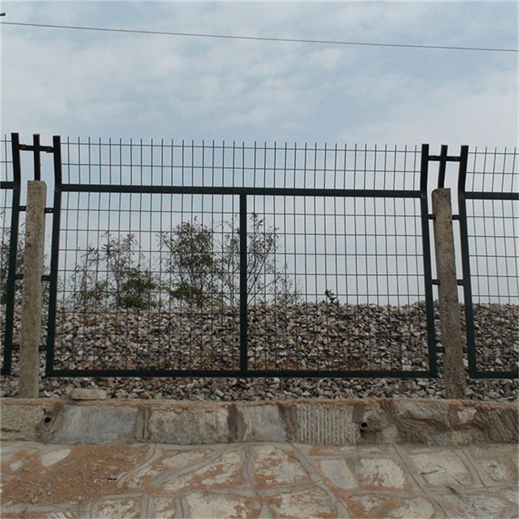 鐵路防護柵欄的防腐工藝處理按照標準分為兩種,一種我們把它簡稱為8001另外一種是8002。8001如圖所示立柱頂端帶彎,8002立柱是直的不帶彎。他們的工藝處理是一樣的,都是由黑絲黑管材料焊接好然后進行整體加工。將工件進行酸洗、脫酸、水洗、然后將立柱和網(wǎng)片整體放入500攝氏度以上的鋅液進行浸鋅,這樣的工藝叫做熱浸鋅,然后再經(jīng)過冷卻、鈍化、成品。這樣的表面處理具有非常高的防腐蝕性使用壽命在15-20年,當然也有缺點,使用時間長了以后表面生成氧化層,顏色發(fā)烏。因此,在這道工序后我們有進行了浸塑處理,增強它的防氧化防腐蝕性。這樣顏色鮮艷,美觀,不易老化。