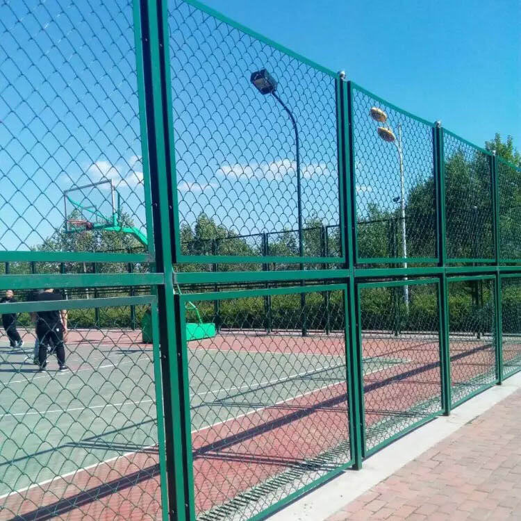 2、立柱設(shè)備好后,設(shè)備橫向支柱,把籃球場圍網(wǎng)整個結(jié)構(gòu)支撐起來。3、用鋼筋將勾花網(wǎng)支撐起來,構(gòu)成全體的圍網(wǎng)。