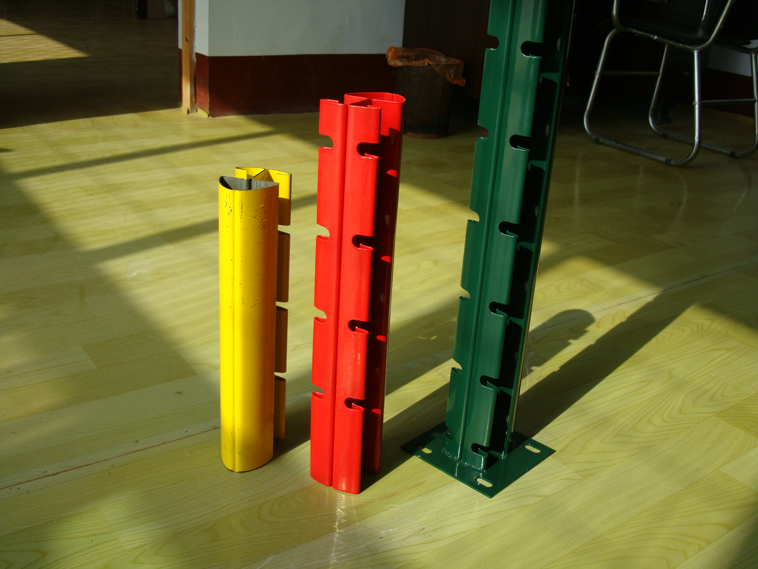 公園桃型柱護欄一般桃形立柱的板材厚度為1-1.2mm,通過機器冷壓、冷彎成型,柱體外側為橢圓型,內側兩板相接后均各自向外彎制成U型,即為掛鉤部分,為便于桃型立柱與網片的連接,立柱內側根據網片的網孔尺寸,延立柱長度方向均勻地設置N組鉤掛缺口,分布于柱體兩側,掛鉤U型的外部與外側的橢圓形柱體的直邊相切,有效地防止被撬開,保證了護欄的防撬性能桃型柱護欄網是一種新型產品。