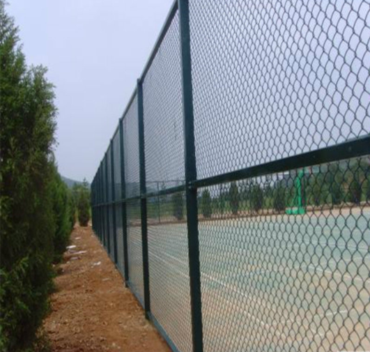 球場圍網(wǎng)網(wǎng)面采用低碳鋼絲,溫度為三百度,用塑料包裹.該方法避免了鋼絲繩氧化破裂的現(xiàn)場,有利于防水、防腐.當(dāng)需要安裝時,必須先安裝柵欄,框架應(yīng)該由水平的桿和柱組成.首先,通常安裝一個列,通常采用嵌入式方法或底盤方法.