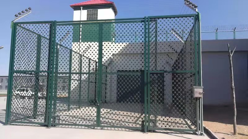 監(jiān)獄透明鋼網(wǎng)墻是監(jiān)獄的重要警戒設(shè)施,是監(jiān)獄的安全防線。地下應(yīng)防止罪犯或外部人員挖地道越獄和劫獄;圍墻除滿足自身結(jié)構(gòu)強(qiáng)度外,尚應(yīng)具備一定的防車輛撞擊、防打鑿孔洞等性能;圍墻頂部和墻面的隔離網(wǎng)要防止攀爬翻越。