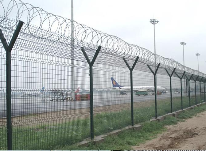 機場護欄網又稱作“Y型安全防御護網”,是由V型支架立柱加強型焊接片網,安全防盜連接件和熱鍍鋅刀片刺網組成強度和安全防御性級別很高。被廣泛應用在機場,軍事基地等高安全場所。機場護欄網是高安全防護產品。所以它的質量也是要求的比較嚴格。重要的是表面的防腐要過關。因為防腐做不好里面的鋼絲容易生銹,對使用壽命會大大的影響。