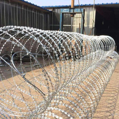 刀片刺繩防護網(wǎng)就是選用金屬質(zhì)料制作而成的像刀片相同形狀的刺繩。那么它是怎樣出產(chǎn)出來的,怎樣成型的呢?