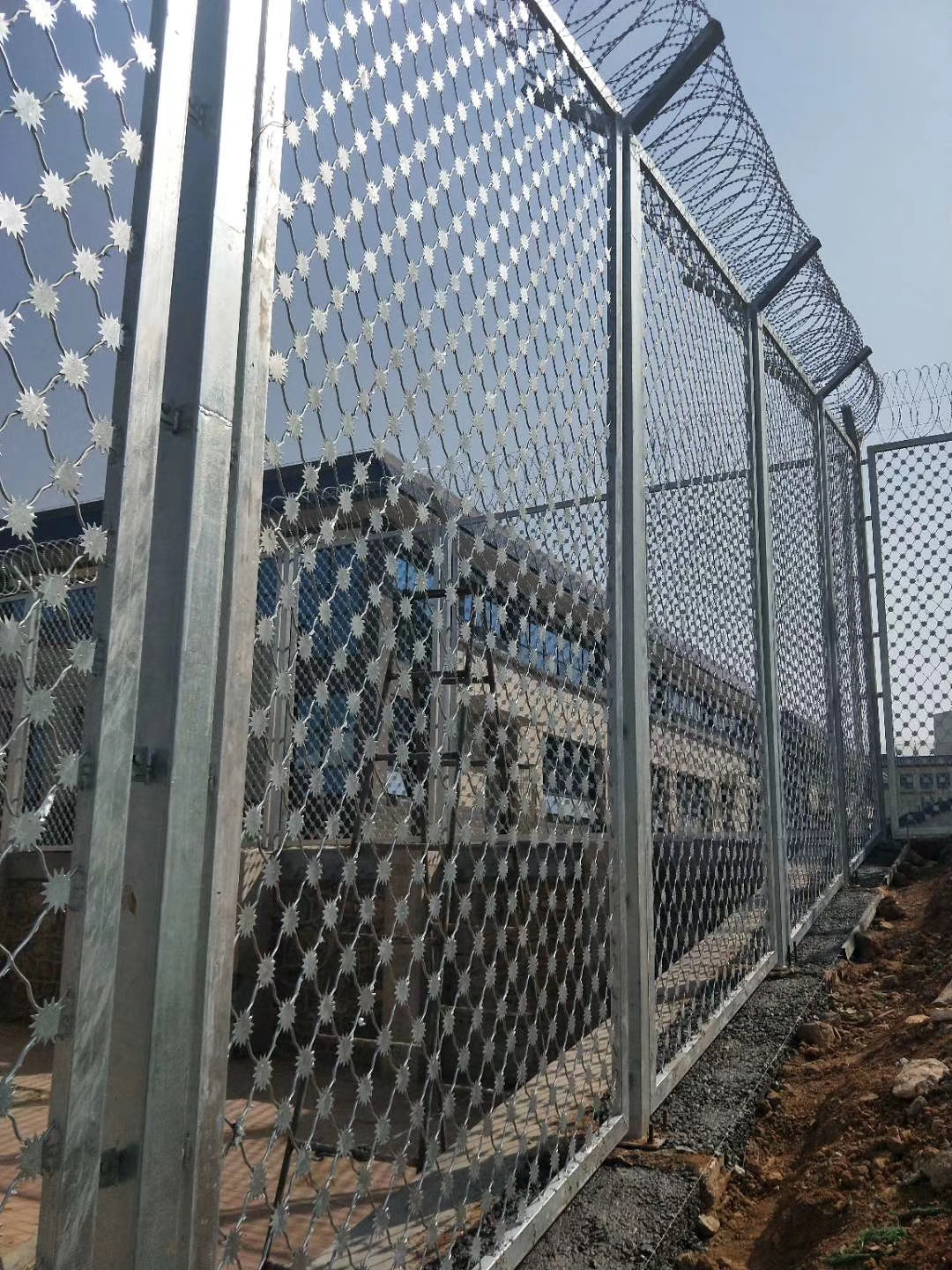 監(jiān)獄隔離網(wǎng)采用電鍍、熱鍍、噴塑、浸塑等防腐形式,具有很好的抗老化、抗曬、耐候等特點(diǎn)。其產(chǎn)品造型美觀、花色多樣,既起到圍欄作用,又起到美化作用。由于具有安全性高、防攀爬能力好,網(wǎng)片連接方式采用特制SBS緊扣件,有效防止人為的破壞性拆卸,橫向四道折彎加強(qiáng)筋,使網(wǎng)面強(qiáng)度顯著增加。