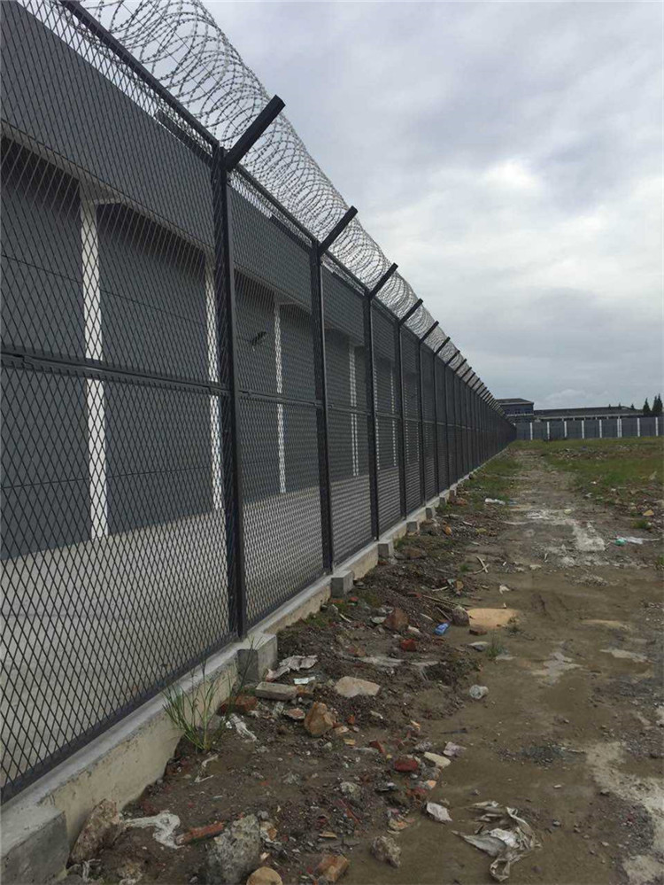 監(jiān)獄護(hù)欄網(wǎng)又稱作“Y型安全防御護(hù)網(wǎng)”,是由V型支架立柱,焊接片網(wǎng),安全防盜連接件和熱鍍鋅刀片刺籠組成強(qiáng)度和安全。注:如果在監(jiān)獄護(hù)欄網(wǎng)頂部加裝刀片刺絲、刀片刺繩安全防護(hù)。采用電鍍、熱鍍、噴塑、浸塑等防腐形式,有抗老化、抗曬、耐候等特點(diǎn)。