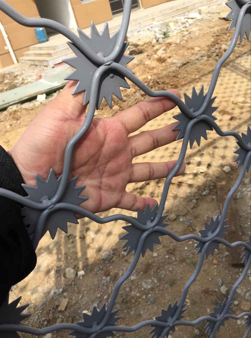 梅花刺隔離網(wǎng)最常用的表面防腐處理方式為整體熱鍍鋅,防腐性能好,不易生銹。常用于監(jiān)獄、看守所、核電站、軍事基地等高安全場(chǎng)所。