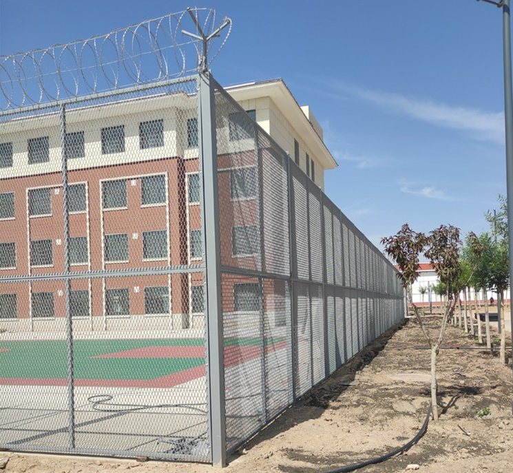 內(nèi)徑線為Φ2.5高熱鍍鋅鋼絲,刀片為不銹鋼 局部加固:警戒隔離網(wǎng)四轉(zhuǎn)角處兩邊各10米(共80米)的下部隔離網(wǎng)上采用加橫支撐及剪力撐加固,高度2.5米,采用40*40*2.5鋼管與柱腳焊接。 所有立柱、框網(wǎng)、刀刺網(wǎng)均白色浸塑。隔離網(wǎng)大門(mén)含在網(wǎng)內(nèi),含非標(biāo)尺寸網(wǎng)片。