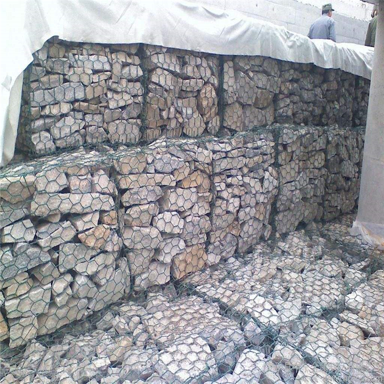 石籠網(wǎng)是一種同時(shí)以生態(tài)建設(shè)和工程防護(hù)作為設(shè)計(jì)理念的新型柔性防護(hù)材料,由直徑在2.0-4.0毫米之間的厚鍍鋅低碳鋼絲經(jīng)重型六角網(wǎng)機(jī)器編織、剪切、翻邊、組裝成型的一種鋼絲網(wǎng)箱,外觀呈鞋盒狀,長(zhǎng)度>2米的網(wǎng)箱內(nèi)部采用間隔1米加以隔板進(jìn)行加固的形式,單純靠一個(gè)柔軟的鋼絲網(wǎng)箱必然是無(wú)法實(shí)現(xiàn)綠化及防護(hù)要求的,石籠網(wǎng)選以塊石、毛石等物進(jìn)行填充、封蓋后即完成了施工,填充后的網(wǎng)箱穩(wěn)固性和防沖刷性能極強(qiáng)可滿足工程所需的防護(hù)性能,與此同時(shí)網(wǎng)箱還兼具著良好的透水性和可植被性,水系動(dòng)植物在箱內(nèi)塊石間尋得棲息之地,后期網(wǎng)箱表層也生長(zhǎng)出大量綠色既可凈化水質(zhì)又可優(yōu)化周邊環(huán)境。