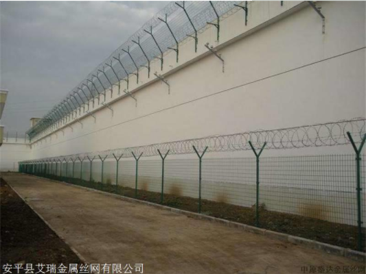 監(jiān)獄鋼網(wǎng)墻的表面顏色分類:常用的是綠色的,深綠色或墨綠色,也有根據(jù)監(jiān)獄周邊設(shè)施的顏色相協(xié)調(diào)一致,格調(diào)一致,選用相應(yīng)的顏色的,比如綠色或灰色的監(jiān)獄鋼網(wǎng)墻,