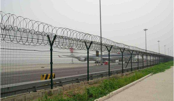 飛機場護欄網(wǎng)廠又稱作“Y型安全防御護網(wǎng)”,是由V型支架立柱加強型焊接片網(wǎng),安全防盜連接件和熱鍍鋅刀片刺網(wǎng)組成強度和安全防御性級別很高。被應用在機場,軍事基地等高安全場所