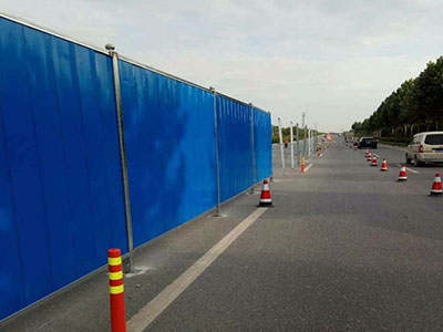 圍擋施工完畢,板與板之間銜接平順,直線要在一條直線上;板與板不得留有縫隙,即在場外不能看見場內(nèi)施工。圍擋沿線設(shè)置紅燈或者隔段用安全反光錐用于夜間警示。