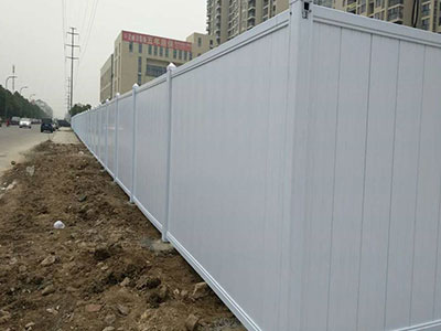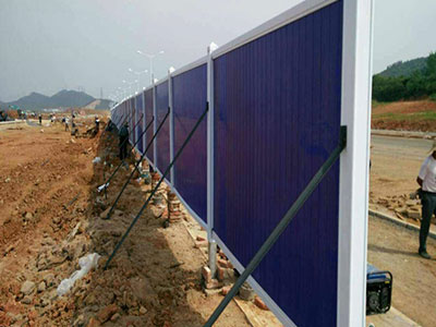 圍擋基腳采用M10水泥砂漿砌筑MU10頁巖磚磚砌0.5*0.5的基礎(chǔ),用于增強圍擋抗風(fēng)穩(wěn)定性;pvc圍擋設(shè)2.5米高,寬3米為一板。施工圍擋做美化處理,噴涂企業(yè)名稱、安全、質(zhì)量、文明施工用語及開發(fā)項目商業(yè)廣告,嚴禁張貼、涂寫垃圾廣告。
