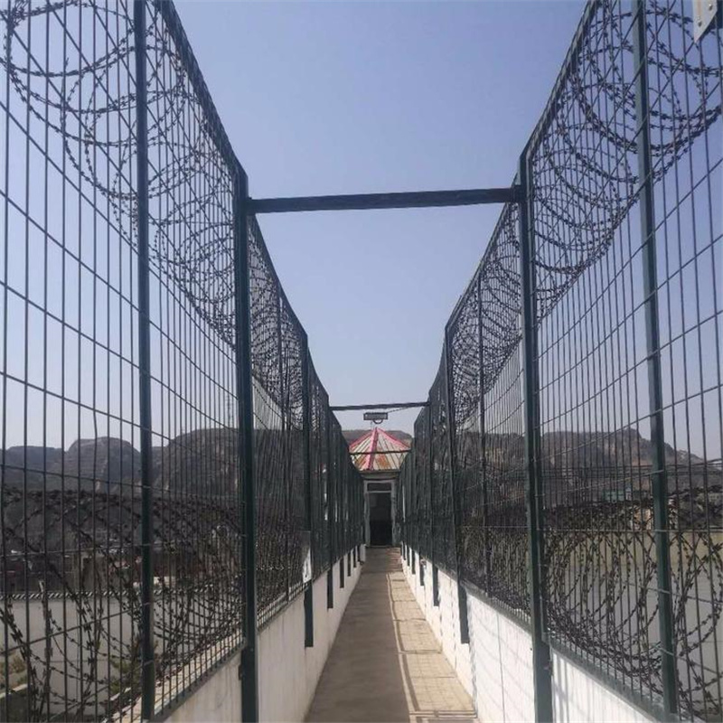 監(jiān)獄圍墻防護網(wǎng)是非常重要的監(jiān)獄安全防護設(shè)施,由焊接鋼網(wǎng)加蛇腹形刺網(wǎng)組合而成。監(jiān)獄圍墻防護網(wǎng)具有結(jié)構(gòu)新穎、鞏固緊密、網(wǎng)面平坦、網(wǎng)孔均勻、鋒鋒利、防攀爬、抗腐蝕性強等特色。建設(shè)于監(jiān)獄的內(nèi)外墻地上及高墻之上,網(wǎng)墻內(nèi)側(cè)或頂部加裝蛇腹形刺網(wǎng),形成一道高不可攀、難以逾越的阻隔妨礙。合作高壓沖擊電網(wǎng)、各種監(jiān)控報警設(shè)備確保監(jiān)獄安全滿有把握。