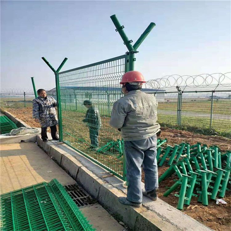 機場上使用的一類護欄網并不為人們所熟知,它又稱為“Y型安全防護網”、機場護欄網或機場圍界隔離網,是由網片、V型支架立柱、焊接片網以及上面的刀片刺繩(又稱刀片網,刀片護欄)和安全防盜連接件組成,它的強度和安全防御性級別都很高。為了增加其防腐性能,適應戶外暴露在空氣、雨水、太陽直射下,護欄網表面采用了熱鍍加浸塑的表面處理方法,使用壽命可達十年。