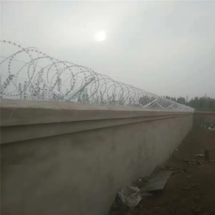 1、刀刺網(wǎng)立柱間距3m,邊框與立柱采用螺栓固定邊耳式連接,邊耳均為40mm*40mm*6mm扁鐵,邊耳螺孔可調(diào),調(diào)節(jié)距離不小于15mm;邊耳固定螺栓為直徑14mm*50mm全絲熱鍍鋅安全螺栓、螺母,每片網(wǎng)單邊連接點(diǎn)為6個(gè)以上。刀刺網(wǎng)設(shè)計(jì)要求整體連貫一致,框網(wǎng)方正,對(duì)角線誤差不大于2cm。