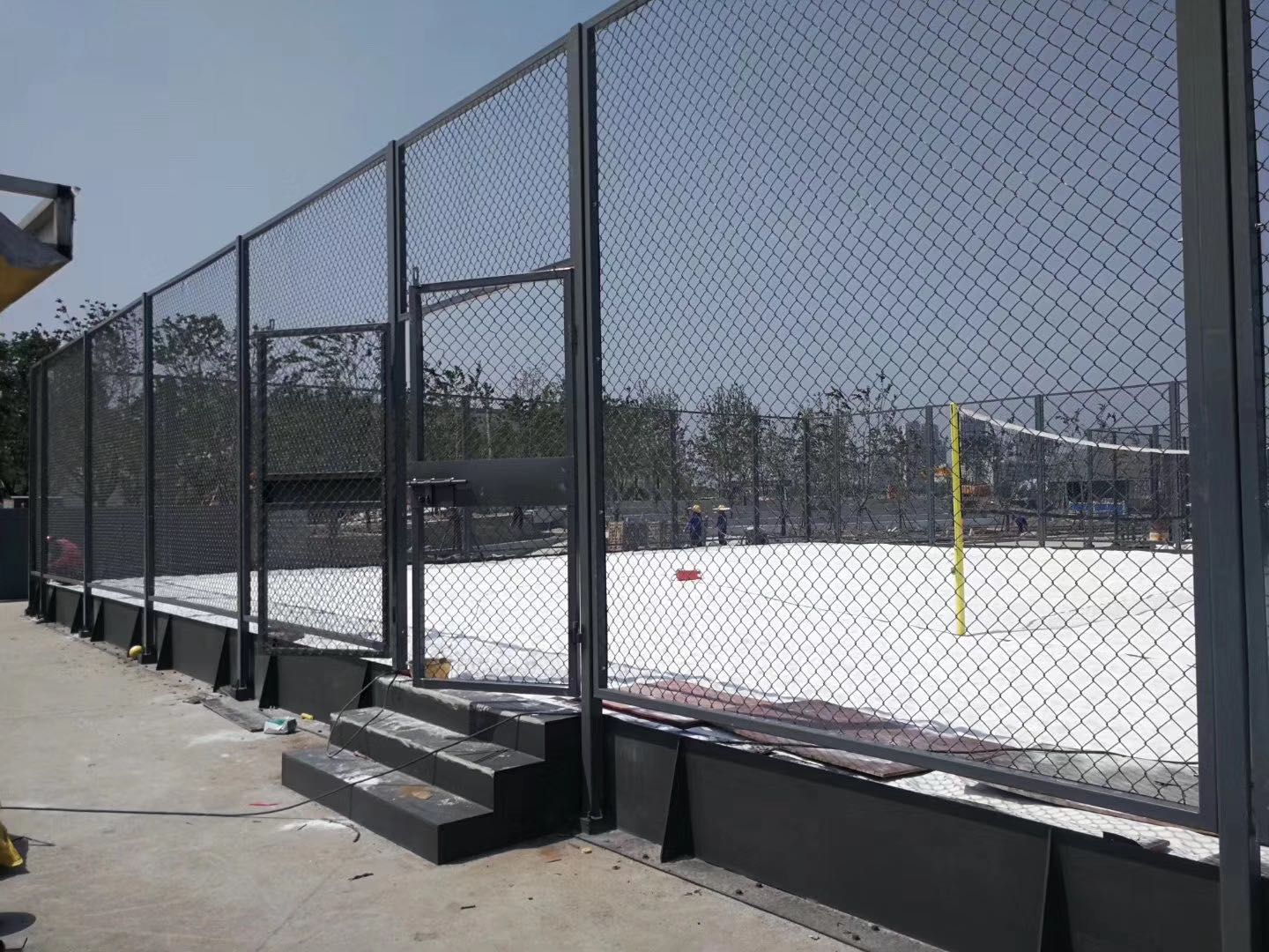 8. 安裝門戶:根據(jù)需要,在圍欄網(wǎng)的某個位置安裝門戶。門戶的安裝方式與圍欄網(wǎng)類似,需要使用立柱和固定夾將門戶固定在地面上。 總結(jié)起來,足球場圍欄網(wǎng)的安裝需要經(jīng)驗豐富的專業(yè)人士進(jìn)行操作,確保圍欄網(wǎng)的牢固和安全。在安裝過程中,需要注意立柱的垂直度和穩(wěn)固性,圍欄網(wǎng)的緊固度和連接處的牢固性。只有安裝正確并且牢固可靠的圍欄網(wǎng),才能有效地保護(hù)足球場的安全和秩序