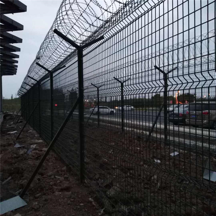 如果Y型機場圍界網頂部裝有刀片刺絲和刀片刺繩,安全保護功能將得到很好的加強。其產品外形美觀,顏色多樣,不僅起到圍欄的作用,還起到美化的作用。Y型機場圍界網可以電鍍、熱鍍、噴涂、浸塑等防腐形式,具有良好的抗老化、防曬、耐候等特點。近年來,它已廣泛應用于機場和軍事基地等高度安全的地方。機場柵欄網由于其高安全性和良好的抗攀爬能力,網格通過特殊的SBS緊固件連接,有效防止人為破壞性拆卸,并且通過在四個橫向方向彎曲鋼筋,網格的強度顯著增加。這種產品經久耐用,價格適中,適合大規(guī)模使用。我廠可根據用戶需求生產各種規(guī)格尺寸的護欄網產品。