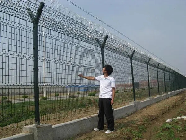 防爬國際機場圍界的安裝方式機場圍界常用規(guī)格: 尺寸: 1.8*3m (柱中到柱中)網孔: 5*10m,5*20cm 立柱一般采用60X60的矩形鋼管頂部帶有V字型支架用來安放刀刺滾籠。優(yōu)點:相較于傳統(tǒng)鋼筋混凝土墻來說,具有成本低易安裝施工,施工周期短等特點。機場圍界網是用于機場周邊將機場與周邊農田設施相隔離的金屬圍界網,它是由立柱、網片、刺繩組成般表面采用浸塑或者噴塑處理用來防止腐蝕延長使用壽命