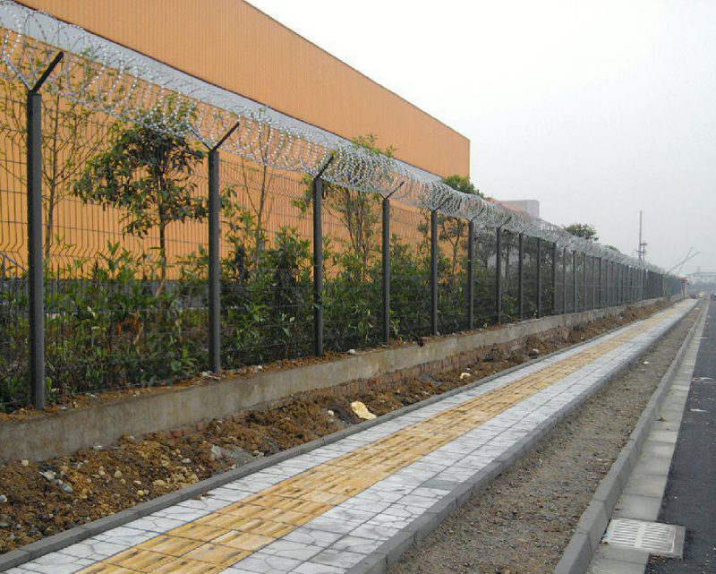 在***個水平地面上開始挖坑,根據(jù)確定的線每2.5米挖300x450x500mm深的坑,然后倒入嵌入式零件。法蘭的上表面距離地面50mm,因此可以用水泥密封焊接點,以實現(xiàn)更好的腐蝕防護,焊接網(wǎng)與立柱,刀片鐵絲網(wǎng),螺栓和其他配件一起到達施工現(xiàn)場,立柱垂直于地面,立柱的中心距離嚴格控制在2500+/-5mm (一種更好的方法是使用一塊焊接網(wǎng)作為標準,以確定每個立柱的位置),同時注意立柱的高度和V形支架的方向應保持一致,監(jiān)獄隔離網(wǎng)的所有部件均應滿足防腐,光滑表面,***老化,***酸堿的要求,并且不褪色。