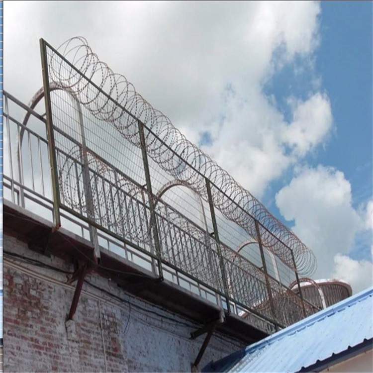 監(jiān)獄隔離網(wǎng)螺旋式刀刺網(wǎng)可以在一定范圍內(nèi)自 由拉伸覆蓋距離的特點(diǎn),我們很難界定它的防護(hù)級(jí)別能不能達(dá)標(biāo),近年來(lái),我國(guó)大部分地區(qū)也漸漸統(tǒng)一了刀刺網(wǎng)的拉伸間距,一般為10-15cm, 這樣的拉伸密度才適合監(jiān)獄的安全要求。然后就是監(jiān)獄隔離網(wǎng)和立柱的表面防腐處理,整體采用除銹+防腐+浸塑的防腐工藝。專用PVC 塑粉,一般上塑量≥0.8mm,表面無(wú)真空、開裂、漏塑、塑液流淌等不良現(xiàn)象,顏色通常為草綠色、墨綠色和白色。
