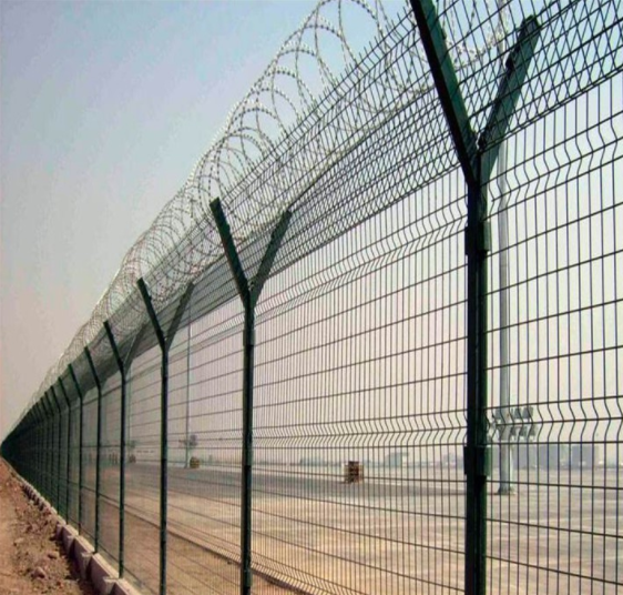 機場護(hù)欄網(wǎng)也稱為“Y型安全保護(hù)網(wǎng)”。機場護(hù)欄網(wǎng)是一種強度高、安全防護(hù)等級高的邊境產(chǎn)品,由V形支撐立柱、加強焊接片網(wǎng)、安全防盜連接器和熱鍍鋅刀片架組成。